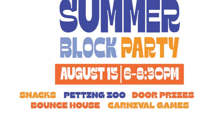 Join us on Friday, August 15 from 6-8:30pm for free family fun! Petting zoo, bounce house, carnival games, snacks, door prizes and more!